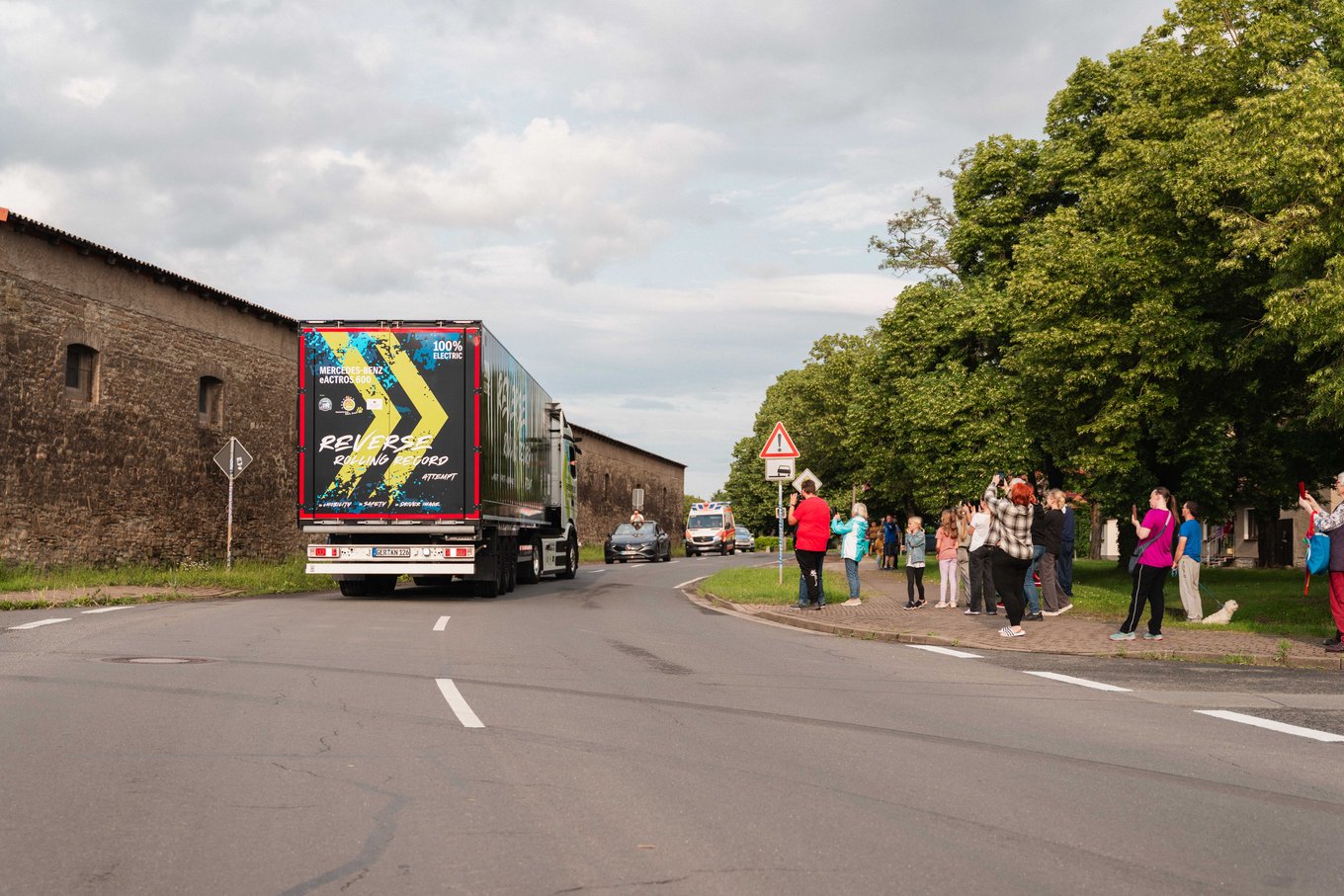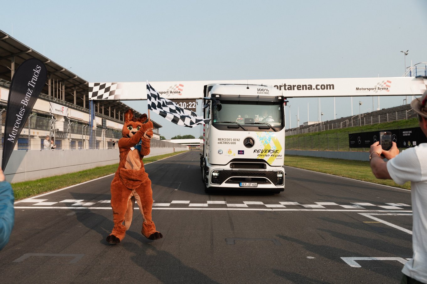 Mercedes-Benz Trucks lässt sein neues E-Flaggschiff, den batterieelektrischen Fernverkehrs-Lkw eActros 600, samt Auflieger mehr als 100 Kilometer ununterbrochen rückwärtsfahren. Mercedes-Benz Trucks will damit den bisherigen GUINNESS WORLD RECORDS™-Weltrekord aus dem Jahr 2020, der bei rund 89 Kilometer liegt und in den USA mit einem Diesel-Lkw aufgestellt wurde, wieder nach Deutschland holen. Die Rückwärtsfahrt findet am 4. Juni in Oschersleben in Sachsen-Anhalt statt. Mit dieser ungewöhnlichen Aktion möchte der Hersteller auf relevante Themen für die Transportbranche und die Gesellschaft aufmerksam machen: Elektrifizierung, Verkehrssicherheit und Lkw-Fahrer-Image.