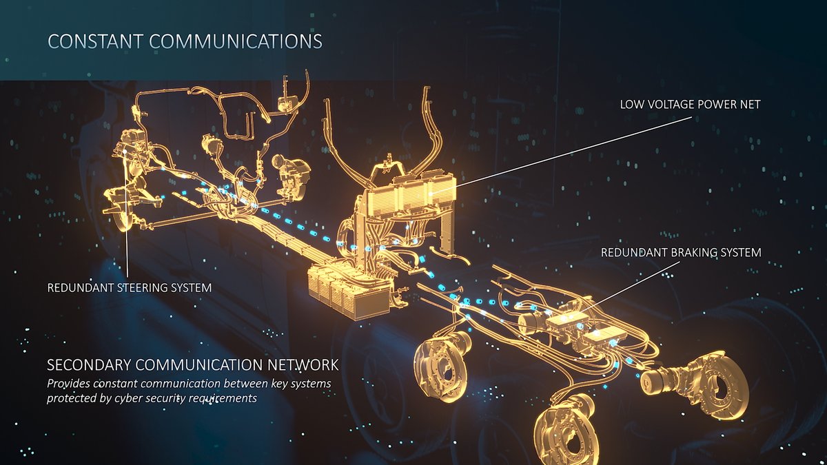 Schauen wir uns dabei einmal die Technik genauer an: Für einen sicheren autonomen Betrieb der Stufe 4 benötigt es redundante, also mehrfach ausgelegte Fahrzeugsysteme. Stellen Sie sich vor, die Lenksysteme fallen aus und es gibt keinen Menschen, der an dieser Stelle eingreifen kann. Sie benötigen also ein elektronisches Backup, eine Mehrfachauslegung. Ähnlich wie bei Flugzeugen haben wir diese Redundanz für sicherheitskritische Systeme wie Lenkung und Bremsen gezielt konzipiert und aufgebaut. Dabei haben wir 1.500 technische Anforderungen umgesetzt und in unseren Freightliner Cascadia integriert, die in allen Bereichen Anwendung finden – beispielweise einen zweiten Satz elektronisch gesteuerter Systeme für die Lenkung, die Bremsen und das Stromnetz. Unser „Autonomous-Ready Cascadia“ setzt bei der Integration autonomer Systeme den Industriestandard . Bislang sind wir die Ersten in der Branche, die eine skalierbare, antriebsstrangunabhängige redundante autonome Fahrzeugplattform anbieten. Wir nennen diesen Ansatz „autonomous-ready“, denn dies ist der Ausgangspunkt und die Grundlage für jedes Level-4-Fahrsystem.